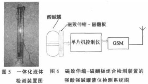目前,工業(yè)用濃酸、濃堿液罐內(nèi)的液位檢測手段,主要有超聲波液位檢測儀、磁翻板液位計(jì)、接觸式防腐蝕液位檢測裝置等。2007年05月,作者參觀了山西省陽城電廠,對(duì)陽城電廠的酸堿罐液位檢測裝置進(jìn)行了考察;該廠現(xiàn)有大小20余個(gè)酸堿罐中酸堿液位的檢測,大都采用超聲波液位計(jì)與磁翻板液位計(jì)相結(jié)合的方式。超聲波液位計(jì)對(duì)酸堿液位信息通過線路傳輸?shù)接?jì)算機(jī),進(jìn)行實(shí)時(shí)觀測。但據(jù)該廠技術(shù)人員介紹,超聲波液位計(jì)有一個(gè)致命缺點(diǎn),就是安裝在罐頂部的超聲波探頭很容易被酸霧或堿霧籠罩,嚴(yán)重影響了測量準(zhǔn)確度,需要工作人員定時(shí)對(duì)超聲波探頭進(jìn)行清洗。磁翻板液位計(jì)沒有數(shù)據(jù)的自動(dòng)傳輸功能,需要工作人員定時(shí)地去觀察液位刻度。為了確保酸堿液位數(shù)據(jù)的可靠性,該廠技術(shù)人員提出增加一套液位檢測裝置的要求,并能實(shí)現(xiàn)數(shù)據(jù)的自動(dòng)化遠(yuǎn)程傳輸。為此,作者利用磁致伸縮傳感器和磁翻板相結(jié)合的辦法,以求實(shí)現(xiàn)酸堿液位的非接觸式測量,并利用單片機(jī)和GSM技術(shù),實(shí)現(xiàn)磁致伸縮液位信號(hào)的無線傳輸。