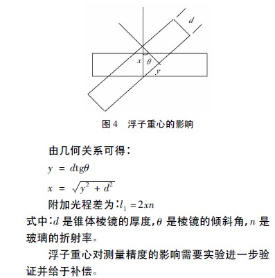 如果浮子重心不在它的幾何重心上,那么內浮子里的全反射棱鏡就會傾斜,如圖4所示。