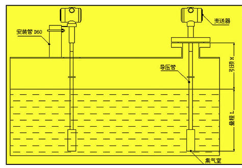 2.2.2 采用中空透氣電纜進行大氣補償的原理由丙烯球罐液位計測量原理圖可知,加在敏感元件上的壓力為P=P0+ H。如果敏感元件完全密封在殼體里,內部一點氣也不透的話,大氣的變動對于敏感元件來說,就相當于水深變化—樣。例如,當被測量的水深為5m 時(比重=1),大氣壓強變動10mmbar,則造成的測量誤差為:10mmbar=1.01972×102mmH2O,5m=5000mmH2O,誤差為:101.97/5000≈2%。由此可見,大氣變動對液位測量造成的誤差是相當大的。為了解決這一問題,在保證液位計密封性能的前提下,加裝帶有透氣管的屏蔽電線,可從根本上解決大氣變動給丙烯球罐液位計帶來的測量誤差問題。