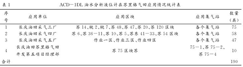 在試驗成功的基礎(chǔ)上,蘇里格氣田對 ACD-1DL 油水分析液位計進行了全面推廣,截止到 2014年 11 月底,共在 87 座集氣站應(yīng)用 190 臺,各單位應(yīng)用情況統(tǒng)計見表 1 。