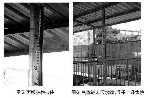 經過兩年多運行,污水罐內可能沉淀污泥雜質導致液位計示數不準。現場拆卸液位計,并且對浮球和磁浮子進行清洗。(圖3-圖4)