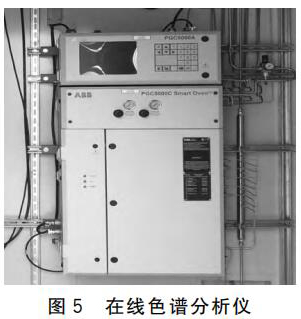 (1)利用電加熱氣化取樣探頭,把測量介質引入在線色譜分析儀,實時分析氣體組分。在使用在線色譜分析儀(圖5)時,需要配合標氣及載氣,提前對色譜進行標定。預處理部分,先把每個取樣管路取下來吹掃5~10min(取樣探頭壓力設定為2~3kg),保證沒有雜質摻入,然后接上管線。要注意定期檢查色譜載氣(H2或者N2)使用情況,及時更換。如果更換不及時,在使用完之前,*好停用色譜,防止燒壞檢測器。