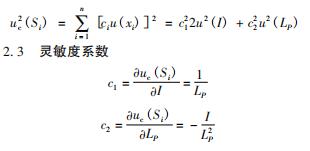 由于上述各輸入量之間相互獨立,測量模型中僅包含輸入量的積和商,合成不確定度的表達式為: