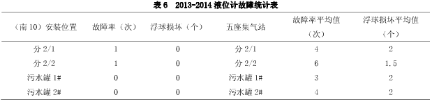 通過表1可以總結集氣站翻柱式浮子液位計主要存在以下幾種故障: