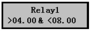 3) 按擊▼鍵可選擇其它繼電器,點OK鍵進(jìn)入繼電器1設(shè)置界面,如右圖,界面中的公式表示繼電器1