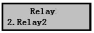 6)設(shè)置好繼電器1參數(shù)后點Mode鍵退回Relay繼電器設(shè)置菜單,按擊▼鍵選擇需要設(shè)置的其他繼電器:例如右圖,表示設(shè)置繼電器2。按擊OK鍵進(jìn)入設(shè)置,方法同上。