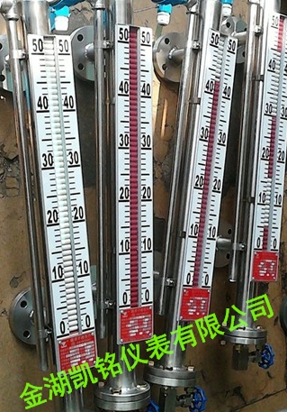 金湖凱銘儀表有限公司生產的防腐型磁翻板液位計的*顯著特點是液體介質與指示器完全隔離,所以在任何情況下都非常安全、可靠、耐用,而且各種型號的液位計配上液位報警、控制開關,可實現液位或界位的上、下限越位報警,控制或連鎖;配上靜壓式液位變送器或干簧-電阻式液位變送器,可將液位,界位信號轉換成二線制4-20mADC標準信號,實現遠距離指示、檢測、記錄與控制。適用于腐蝕性介質且工作溫度又較高場合的液位測量,結構可靠,使用壽命長。是硝酸等強腐蝕性介質液位測量的*好選擇。為客戶量身定制,對溫度和壓力要求不高的可以使用本公司的PP材質的液位計。該系列液位計可廣泛適用于電力、石油、化工冶金環保、船舶、建筑、食品等各行業生產過程中的液位測量與控制。
