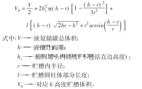 將2#~6#氨罐尺寸代入上式后,體積就與氨罐的液位一一對應(yīng)了,液位由差壓液位計(jì)進(jìn)行測量,*終求得體積。