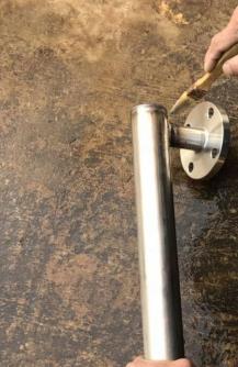3、焊接法蘭,對主管頂端封頭進行焊接;法蘭和通液管的連接(焊接)并矯正兩法蘭的水平度